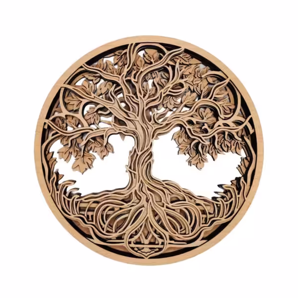 L’utilisation de trois essences de bois, le peuplier, le hêtre et le bouleau, dans la réalisation d’un arbre de vie, porte une symbolique riche et profonde. Le peuplier, souvent associé à la résilience et à la renaissance, représente la capacité de surmonter les défis et de se renouveler. Le hêtre, avec sa robustesse et sa longévité, symbolise la sagesse, la connaissance et la continuité. Enfin, le bouleau, arbre de lumière et de renouveau, évoque la purification et la protection. Ensemble, ces trois essences créent une harmonie symbolique où la résilience, la sagesse et le renouveau se combinent pour représenter un cycle de vie complet, riche en significations spirituelles et philosophiques. L’arbre de vie ainsi conçu devient une métaphore puissante de la croissance personnelle, de l’apprentissage et de la transformation continue.