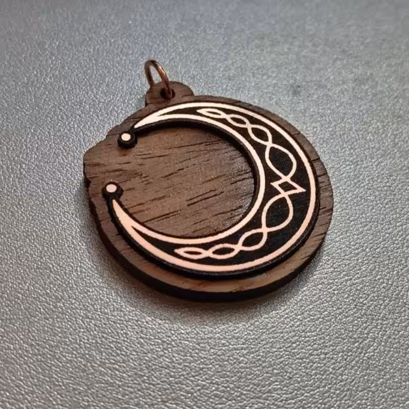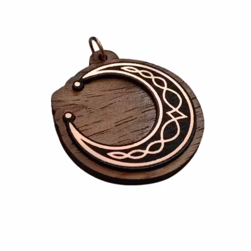 Créé avec passion, ce pendentif est le fruit d’un artisanat dédié à la magnificence des symboles celtiques. L’alliance du bois naturel et de l’acrylique dorée rosée évoque la chaleur et la préciosité des ornements anciens, reflétant l’élégance et le mysticisme d’une culture riche d’histoire.