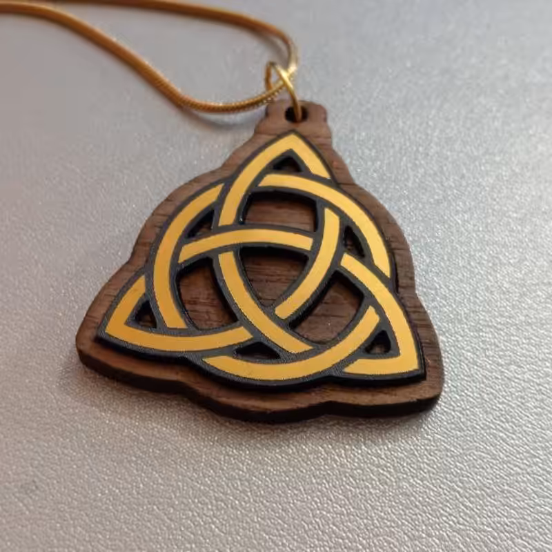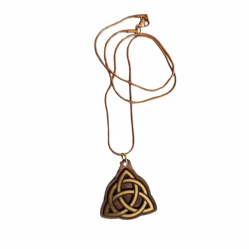 Créé avec passion, ce pendentif est le fruit d’un artisanat dédié à la magnificence des symboles celtiques. L’alliance du bois naturel et de l’acrylique dorée évoque la chaleur et la préciosité des ornements anciens, reflétant l’élégance et le mysticisme d’une culture riche d’histoire.