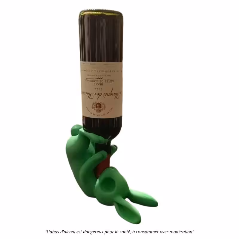 design unique : ce lapin, positionné sur le dos, est conçu pour maintenir votre bouteille en équilibre grâce à son centre de gravité et à ses pattes arrière. Il garantit une stabilité optimale tout en amusant l’œil.