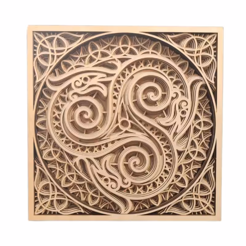 Fabriqué dans un atelier local, en bois multi-couche, chaque Triskell est réalisé à partir de bois issu de forêts gérées durablement. Choisir ce produit, c’est adopter un élément de décoration puissant, tout en soutenant une démarche éthique et le respect de l’environnement.